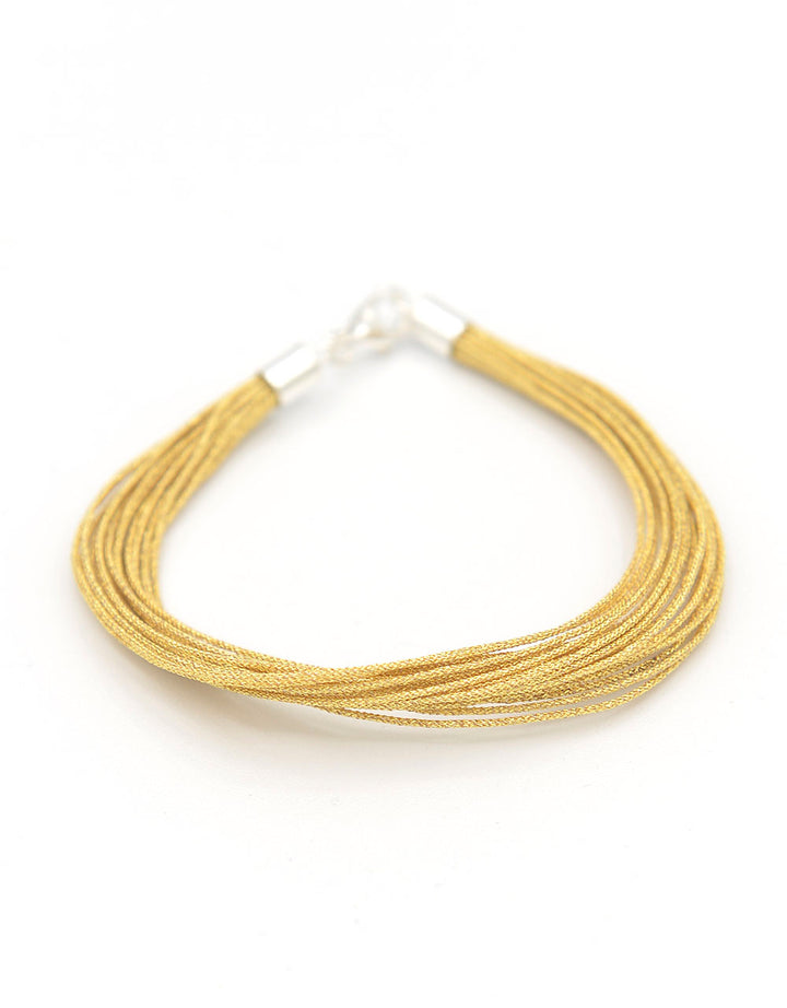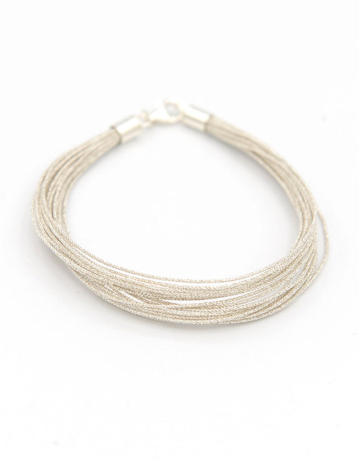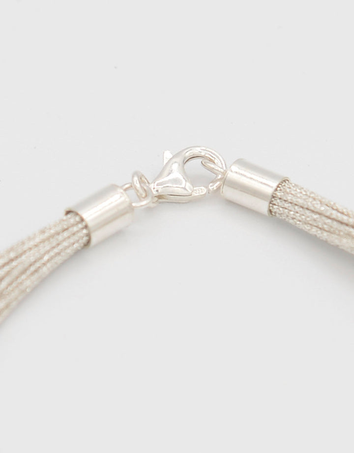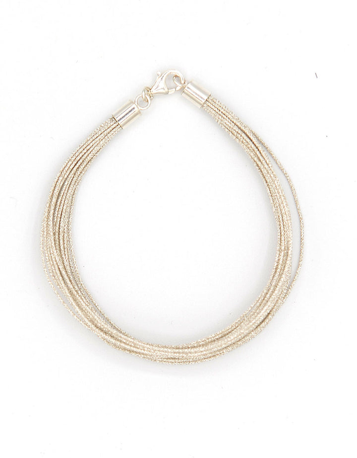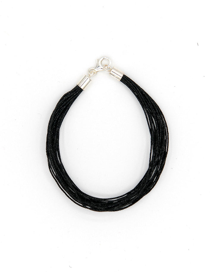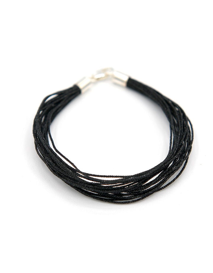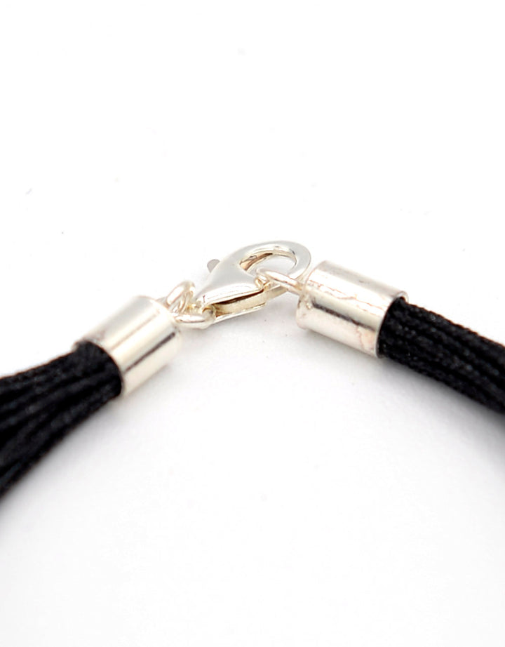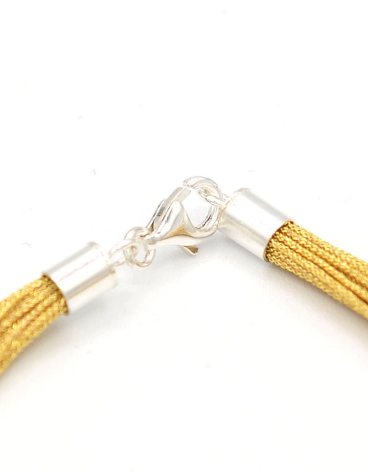 Bracciale in seta trattata e chiusura in argento 925%. La seta viene resa resistente a gli agenti esterni e diventa duratura nel tempo. Si adatta bene al polso e dona luminosità ed eleganza. Misura 18 cm chiusura a gancio