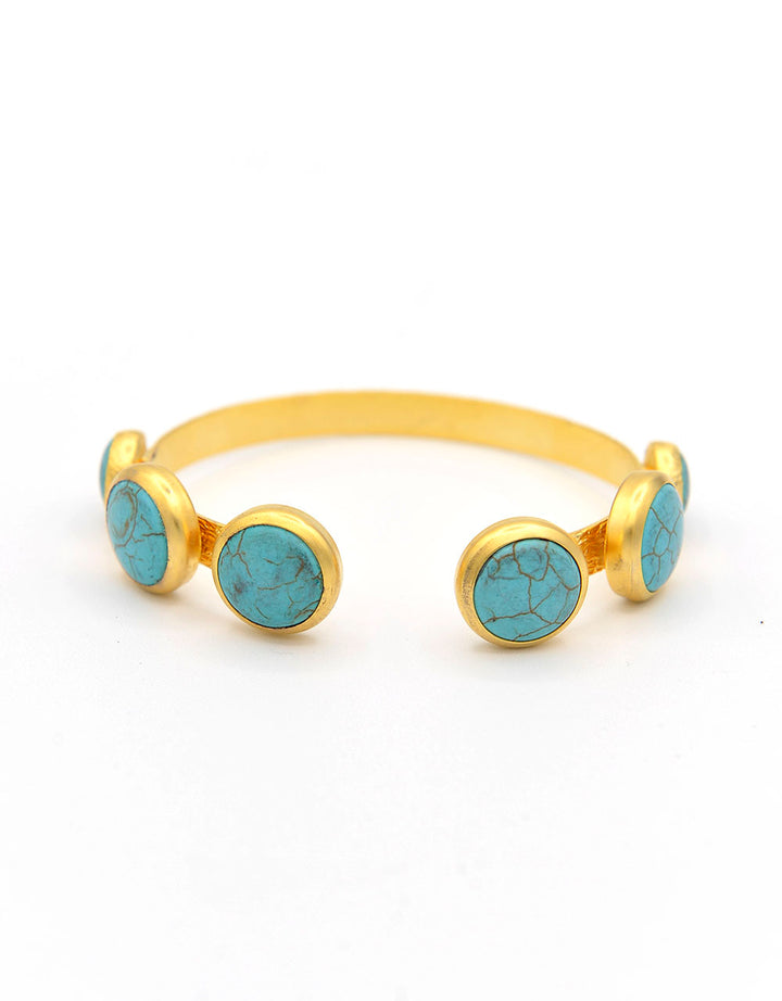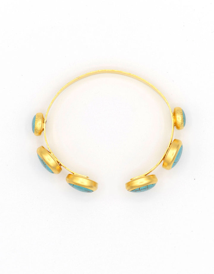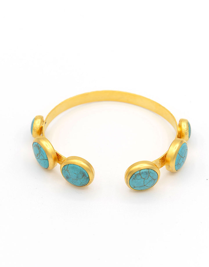 bracciale rigido regolabile,in zamak dorato e pasta di turchese incastonata. si adatta perfettamente al polso e dona eleganza e luminosità.