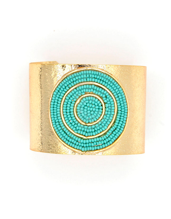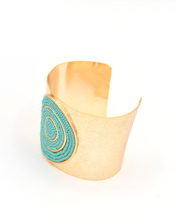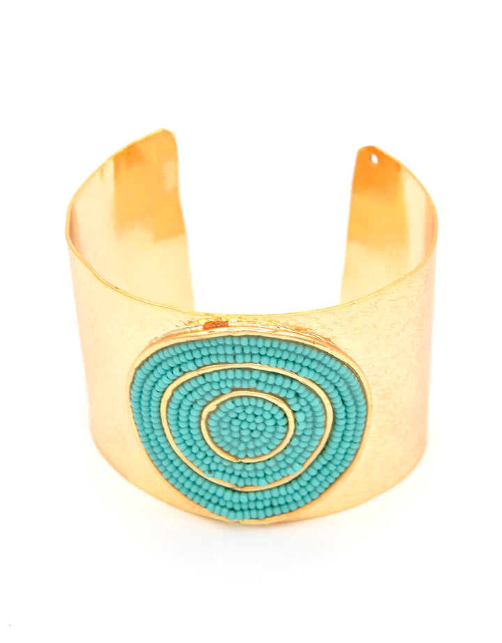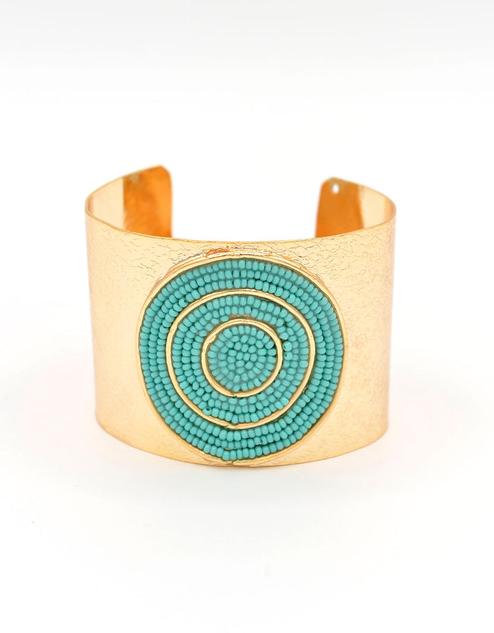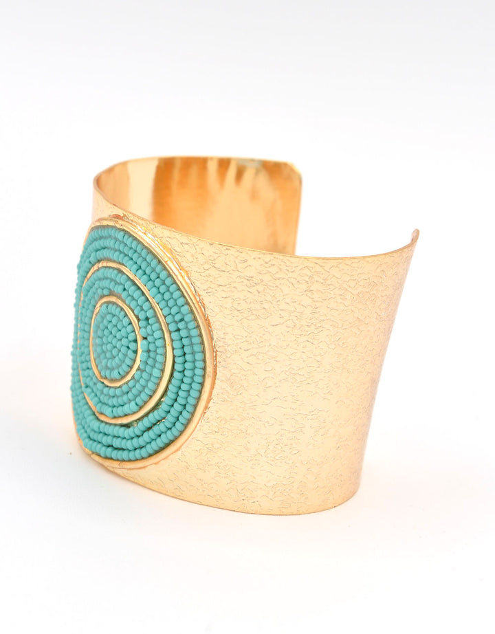 Bracciale dorato fascia in zamak e quarzi turchesi