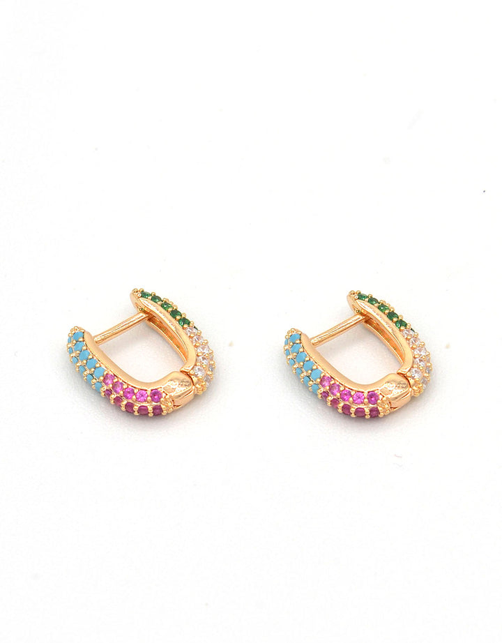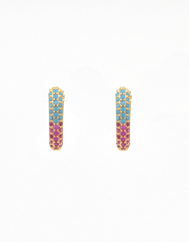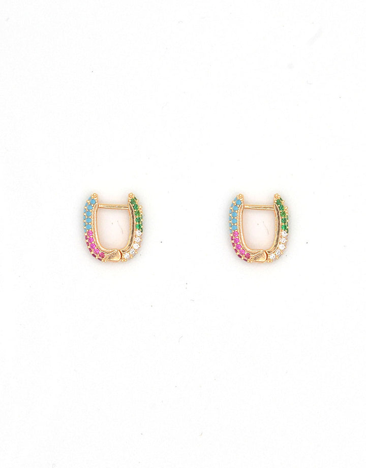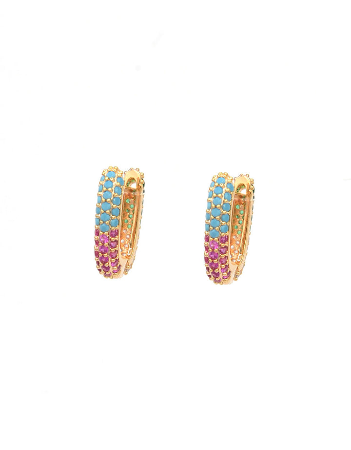 Orecchini in acciaio 316L dorato. Formati da un cerchio con zirconi colorati incastonati. .Anallergico e inossidabile, resistente a gli agenti esterni. Circonferenza 1 cm
