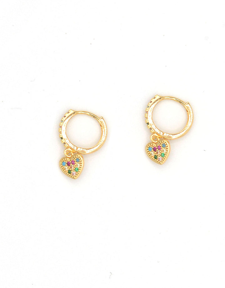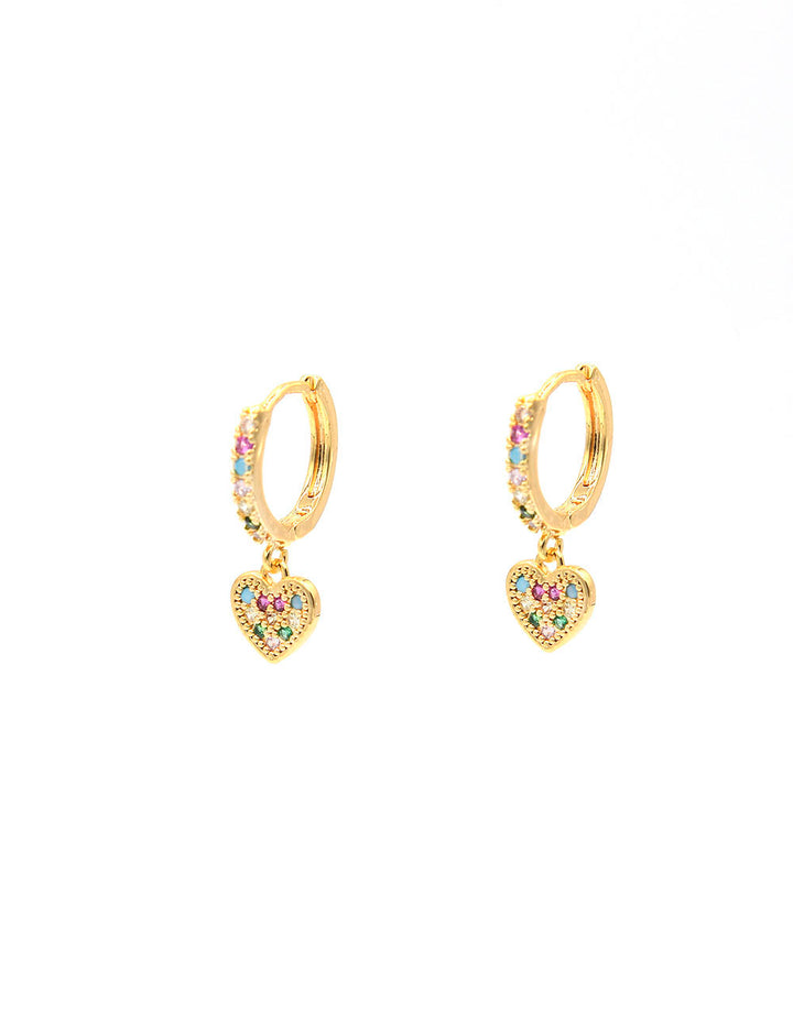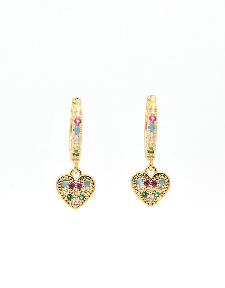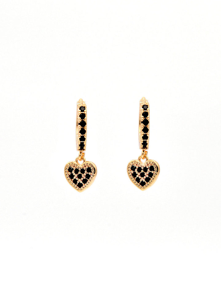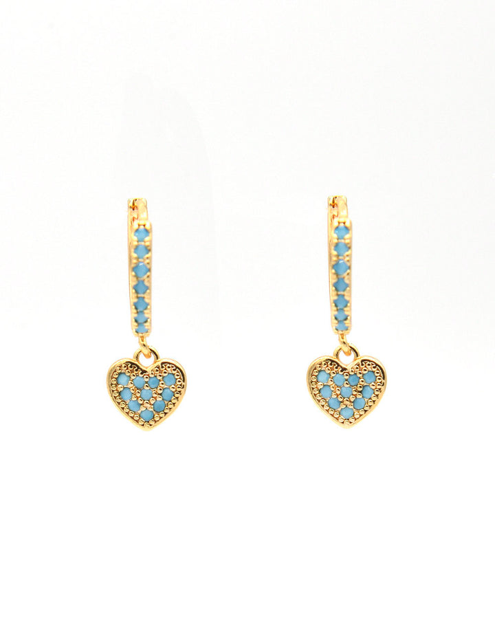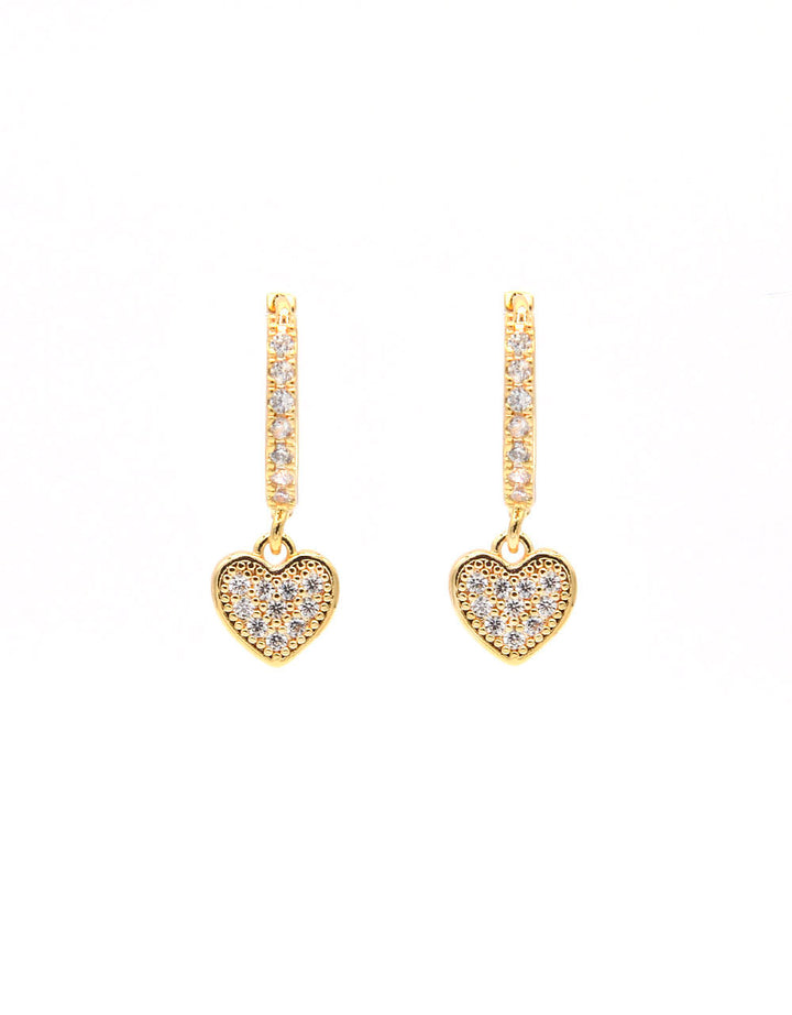Orecchini in acciaio 316L dorato. Formati da un cerchio con zirconi incastonati e come pendente un cuoricino sempre con zirconi. Anallergico e inossidabile, resistente a gli agenti esterni.
