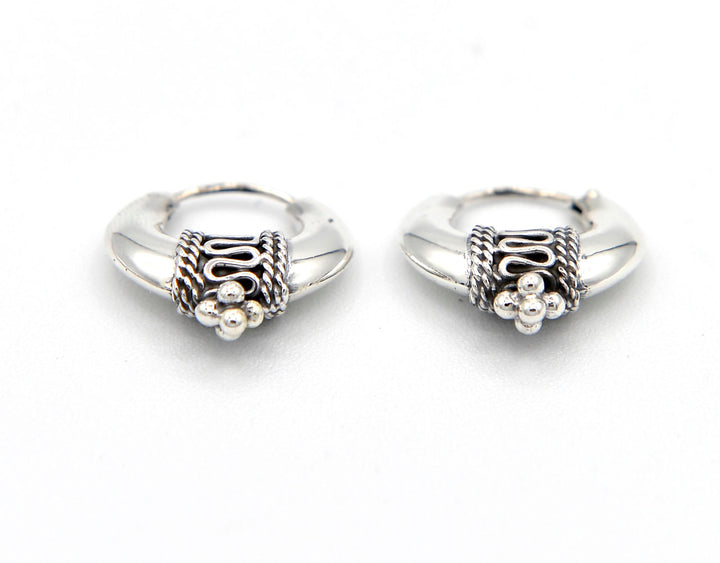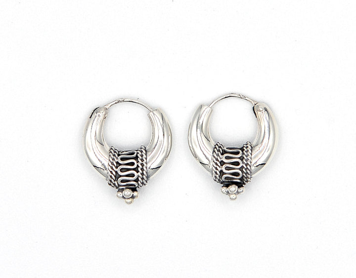 Orecchini a cerchio in argento 925% con lavorazione. Circonferenza 1,8 cm