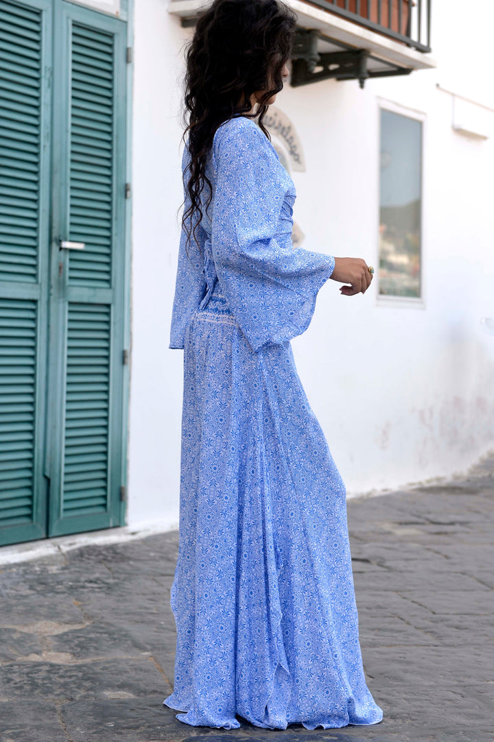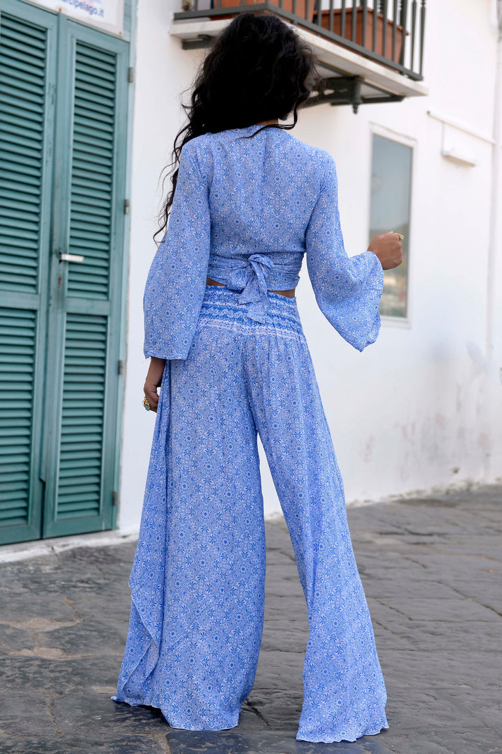 Top con nodo blu e pantalone. 100% viscosa freschi e comodi. taglia unica